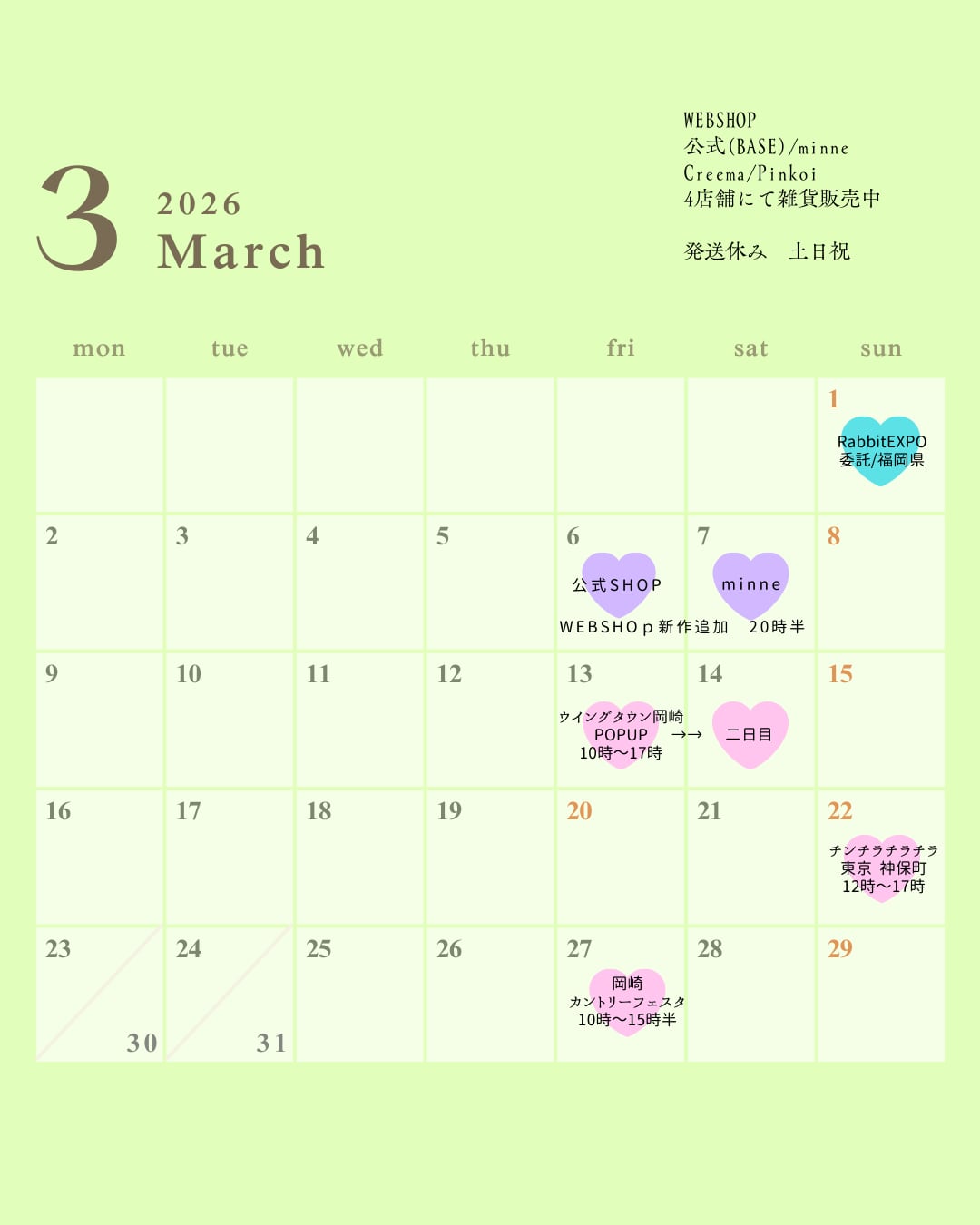 3月の営業カレンダー