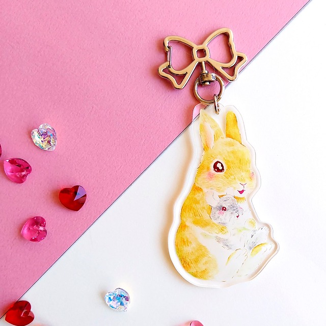 うさぎのキーホルダー クリアハート ロップイヤー 印刷剥げず丈夫で長持ち加工☆