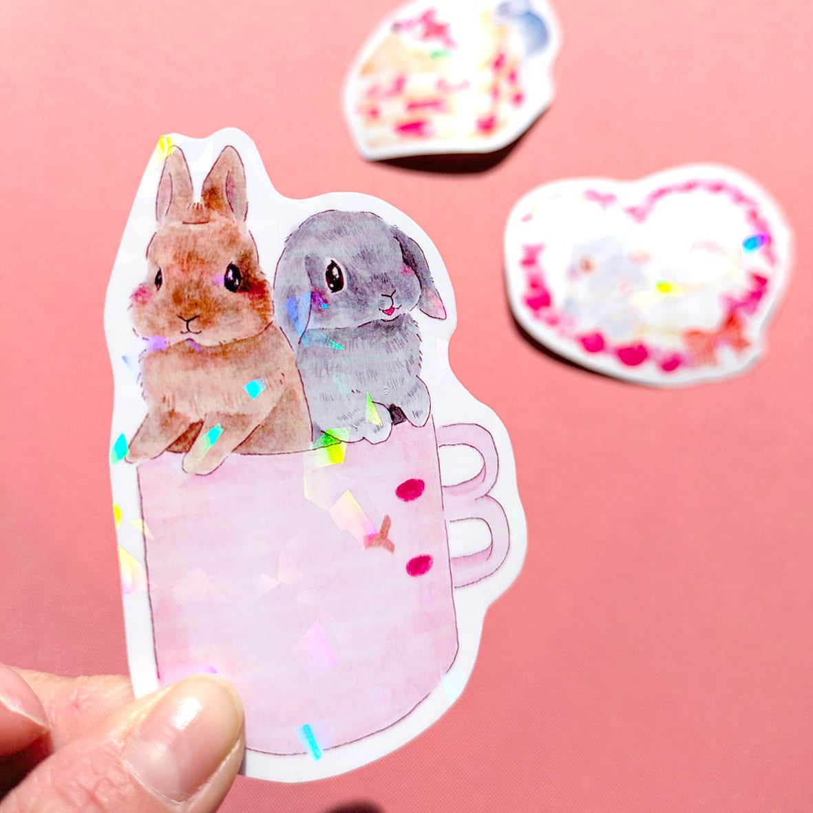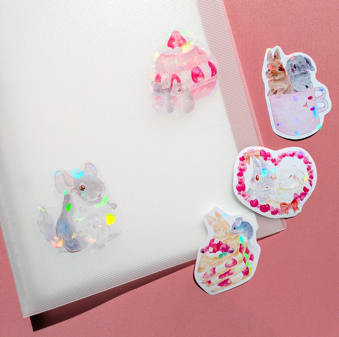 【3種類】キラキラ耐水クリアステッカー【うさぎ】