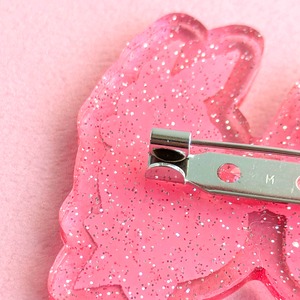 ピンクのキラメキブローチ マカロン チンチラ