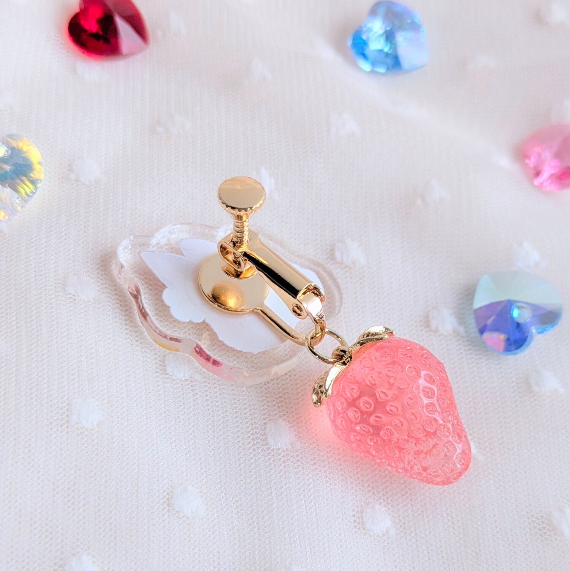 クリアで夏らしいいちごパーツ、ゴールドの素材で幼っぽくなりすぎないように。