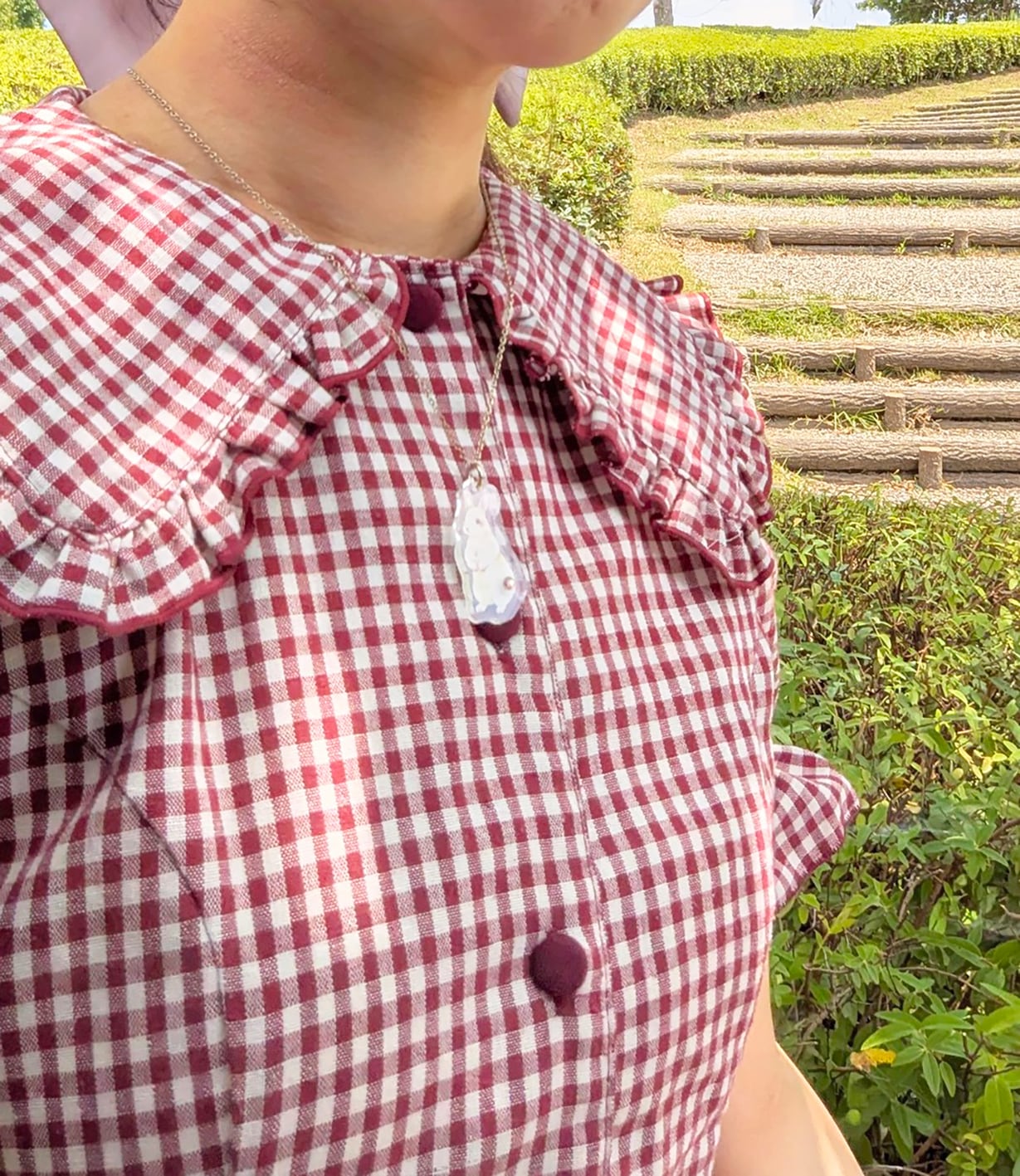 幼っぽくなり過ぎないように、キラキラのストーンで首元を華やかに☆