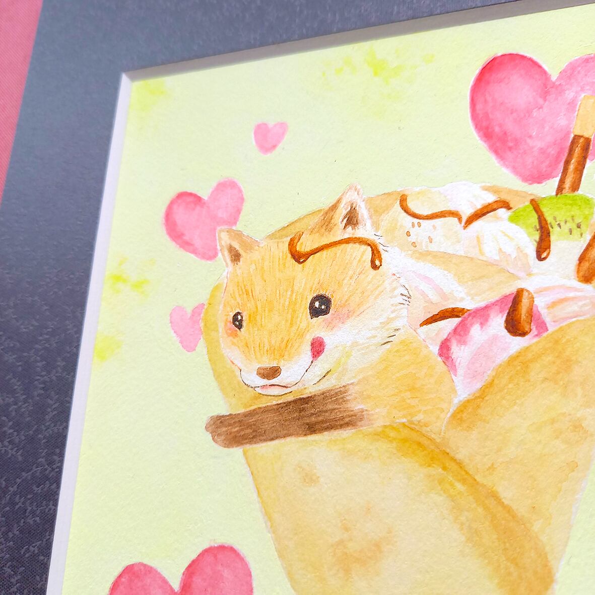以前個展『SugarHolic』にて、甘い物×動物の組み合わせで描いた1枚です。